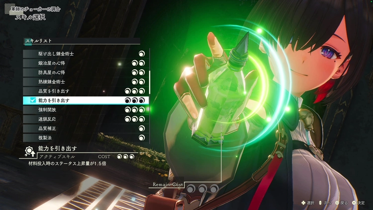 多くのステータス上昇アイテムを入れるため、材料投入時のステータス上昇量が1.5倍される「能力を引き出す」を選択しよう。