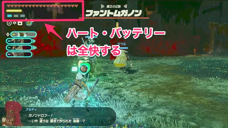 瘴気魔を倒すとファントムガノンとの連戦になるが、ファントムガノン戦の前にバッテリーは自動で回復しているので、後のことを考えてバッテリーを温存しなくてOK。
