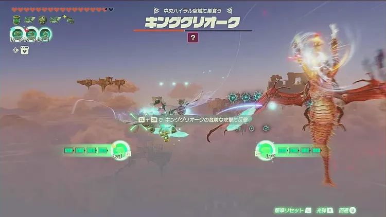 グリオークが首のあたりで力を溜め始めたら危険な攻撃をしてくる合図なので、ZLボタン+ZRボタンで反撃を開始しよう。