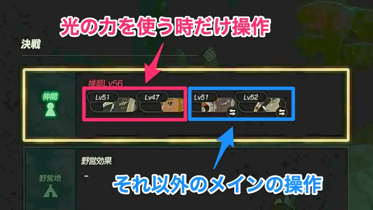 ラウルやゼルダは光の力を使う時だけ操作し、それ以外では他のキャラに切り替えて戦うと危険な攻撃への対処も容易になるので安定した立ち回りが可能。